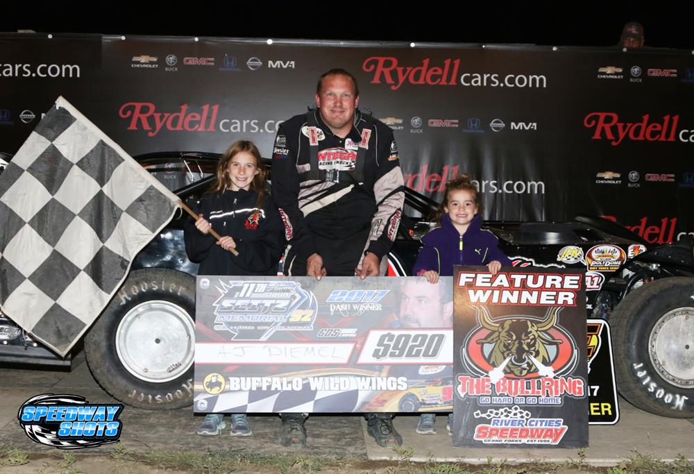 GRAND FORKS, N.D. (September 7, 2024) – The 18th annual John Seitz Memorial concluded on Saturday night at River Cities Speedway with five WISSOTA Dirt Track Racing feature winners - Cole Searing, Joe Thomas, Trevor Nelson, Matt Schow and Cole Greseth.
