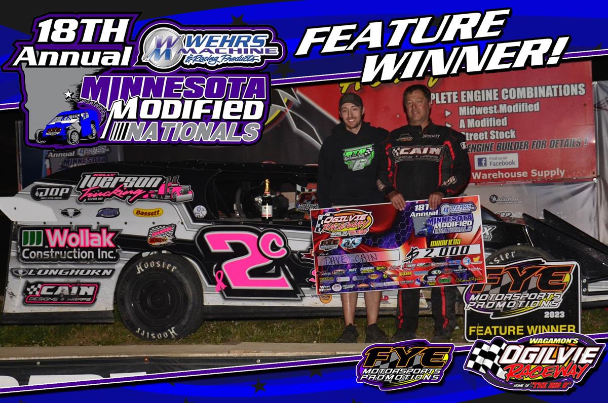 Ogilvie, MN (May 28) – Sunday night wrapped up day two of the Wehrs Machine and Racing Products Minnesota Modified Nationals presented by FYE Motorsports, and both fans and drivers were treated to a night packed with WISSOTA Dirt Race Action. Shane Sabraski went in to the night ready to sweep the event features in both the WISSOTA Modifieds and Super Stocks, however Dave Cain and Dexton Koch put an end to that plan by winning their respective features. Zach Benson, Joe Wilber and Dustin Holtquist earned the other feature wins, which coincidentally, were their second straight feature wins of the weekend as well.