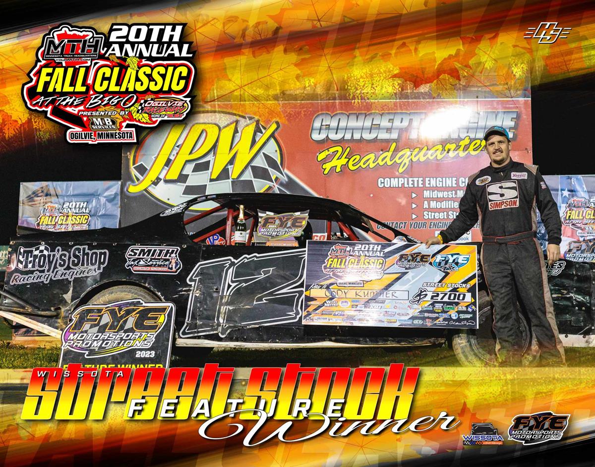 Ogilvie, MN (October 7, 2023) – Brutally cold temps, damp air and breaks of sunshine is what mother nature sent Wagamon’s Ogilvie Raceway for the 20th Anniversary MTH Fall Classic presented by FYE Motorsports. An impressive 310 drivers signed in to battle over the duration of the weekend, and an even more impressive number of fans came to sit and watch the best of WISSOTA battle for the title, Fall Classic Champion.